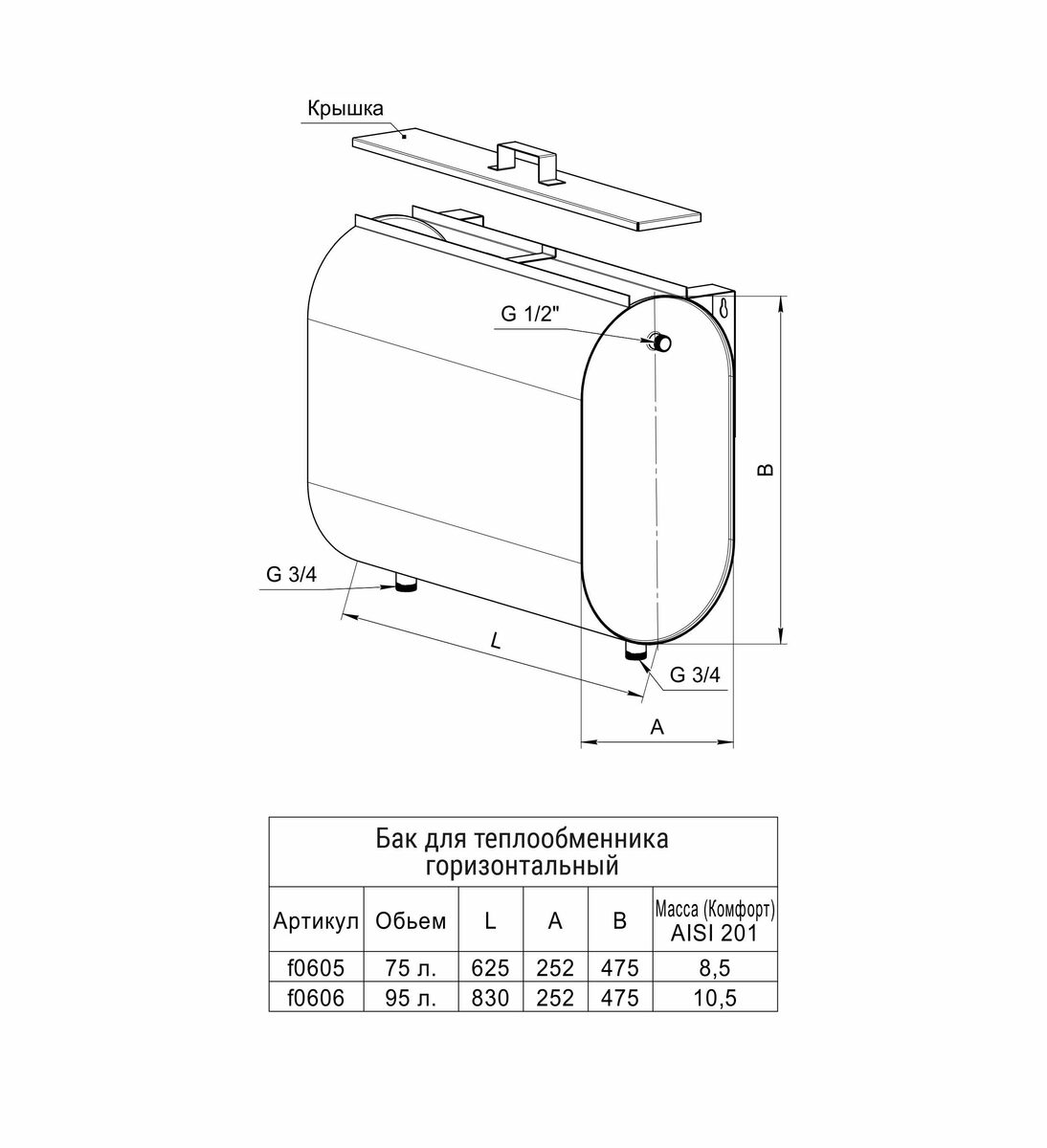 | Наименование | Бак "Комфорт" для теплообменника горизонтальный эллипс 95 л | Бак "Комфорт" для теплообменника горизонтальный эллипс 75 л | Бак "Комфорт" (AISI 201/1.0) навесной для печи 40л | Бак "Комфорт" (AISI 201/1.0) навесной для печи 60л |