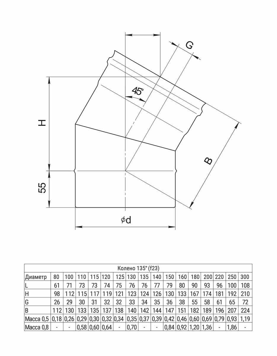 Колено угол 135 Ferrum (430/0,5 мм) D130