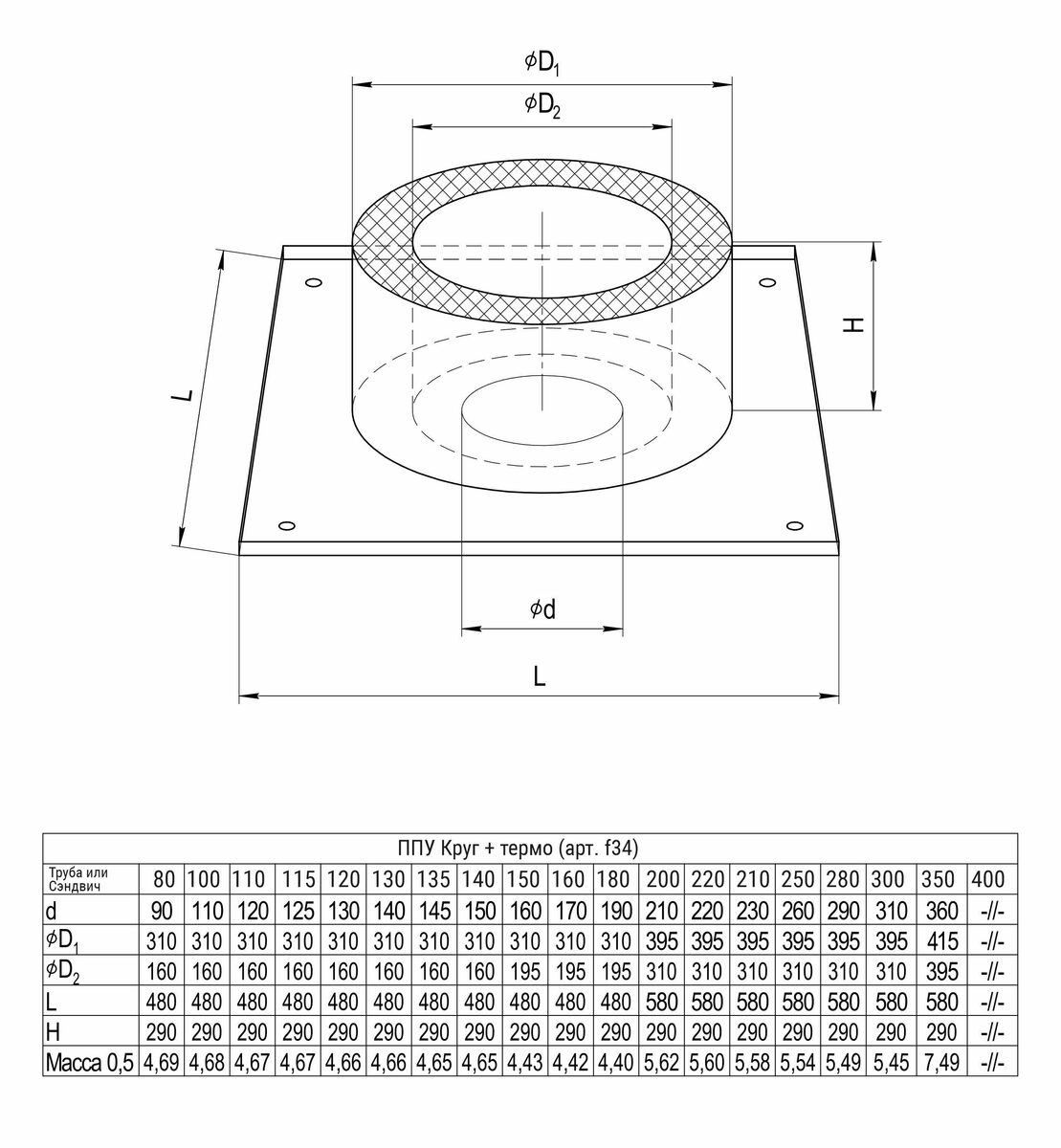 Потолочно проходной узел Ferrum (430/0,5 мм) max t=450 C D250