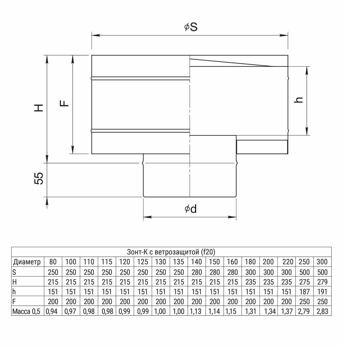 Зонт-К Ferrum (430/0,5 мм) с ветрозащитой D160